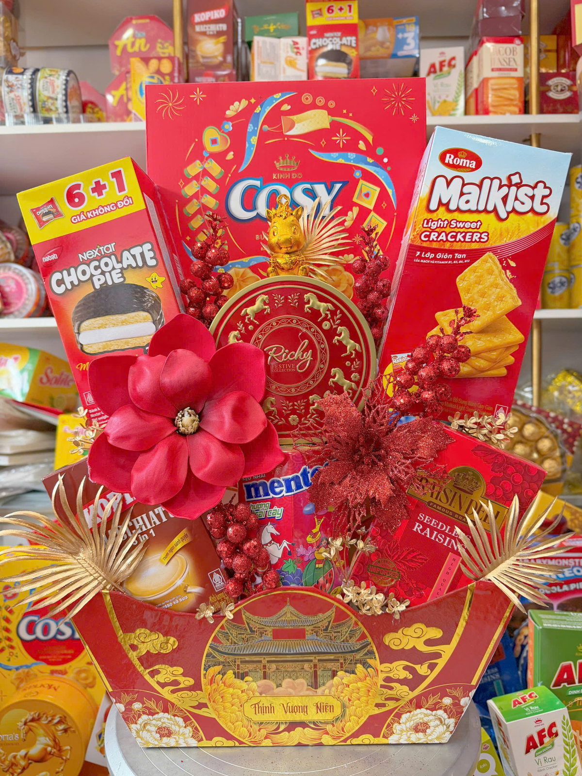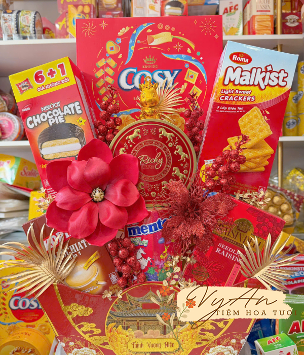 Khay thuyền Thịnh Vượng Niên Trọn bộ trang trí kim tuyến + mộc lan
